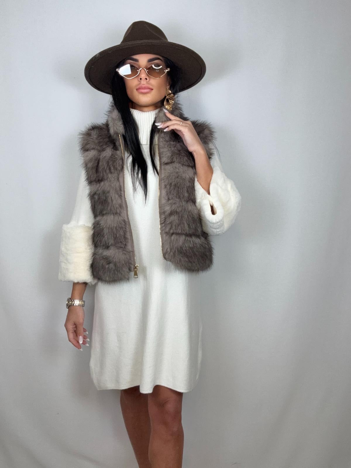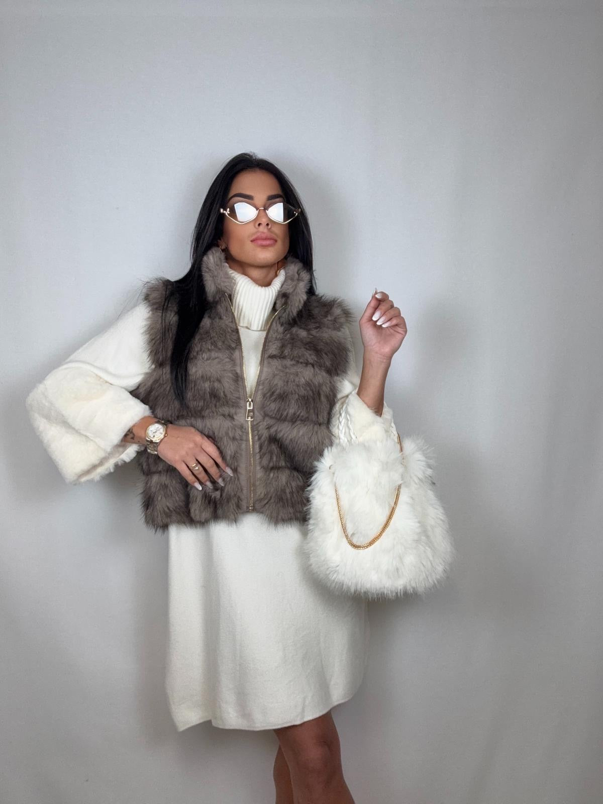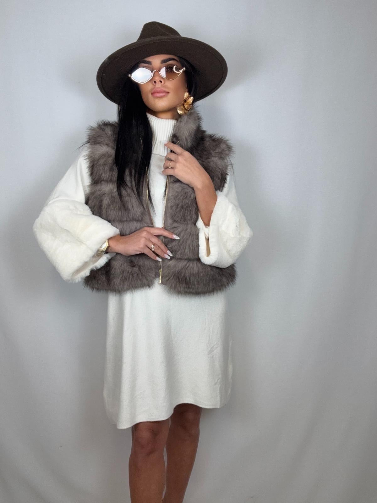 Smanicato in eco-pelliccia beige corto con cerniera taglia unica